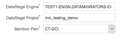 DataStage Engine <Datastage Engine Name> DataStage Project <Datastage Project Name> Bamboo Plan <Bamboo Plan>
