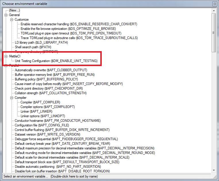 Add “$DM_ENABLE_UNIT_TESTING” from the “MettleCI” section: