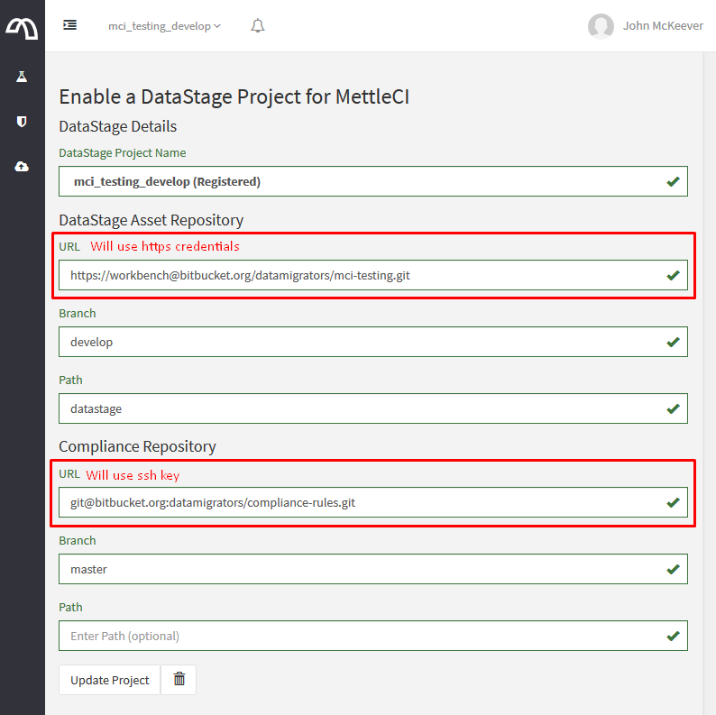 In the event that you need to use Git over HTTPS rather than SSH you can configure MettleCI Workbench to store a set of username/password credentials for each user which will be used for all Git HTTPS requests.