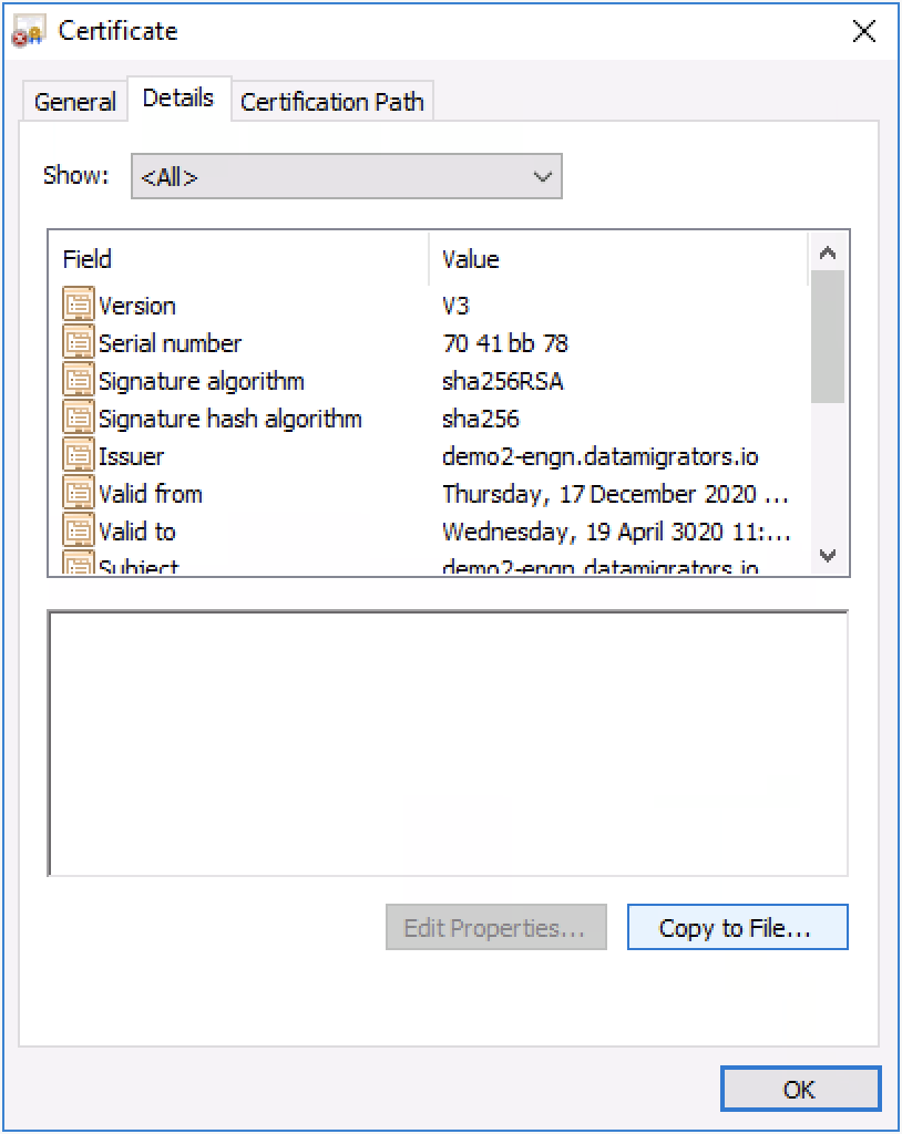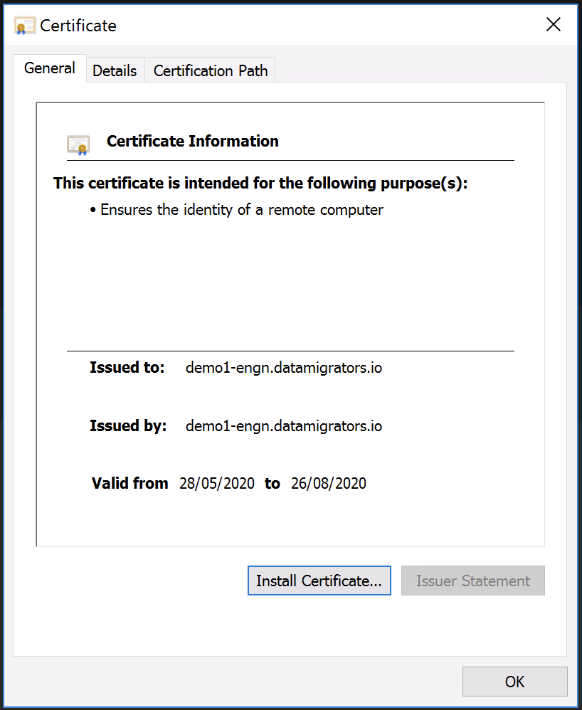 -sigalg SHA256withRSA -dname "CN=my-engine.datamigrators.com" \