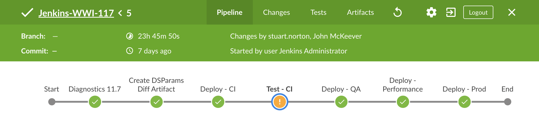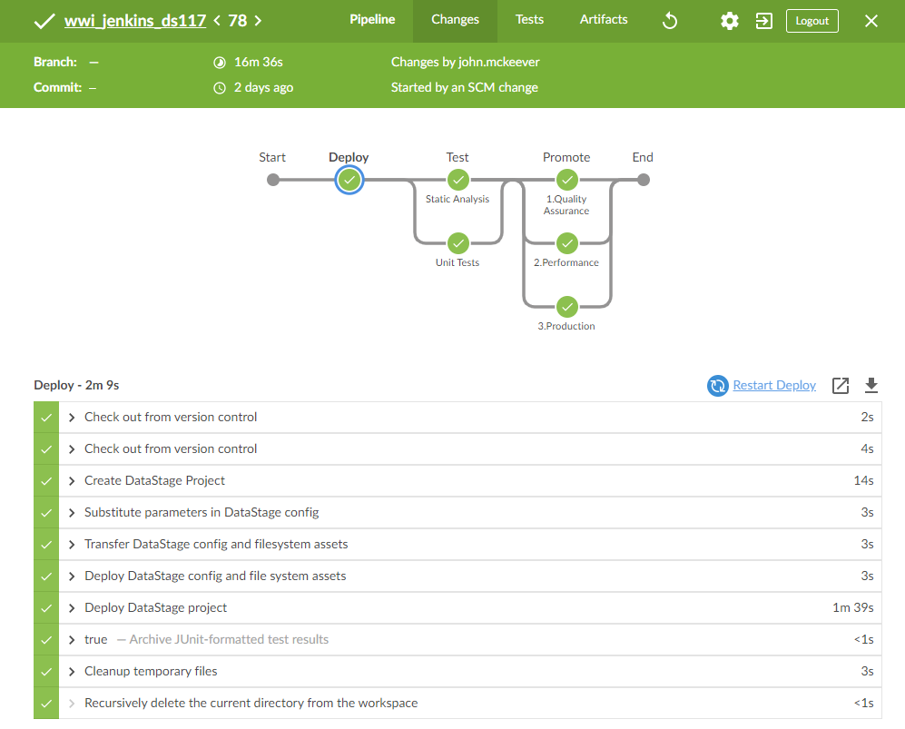 - in the Unit Tests subset, fetch any unit test specifications for changed assets, and execute them, generating unit test reports, then archive the JUnit results and clean upPromote: Three identical subsets of steps, each of which performs the tasks outlined for Deploy but for a different environment. The first subset runs without intervention but the second two prompt the user whether to deploy to that environment or not.