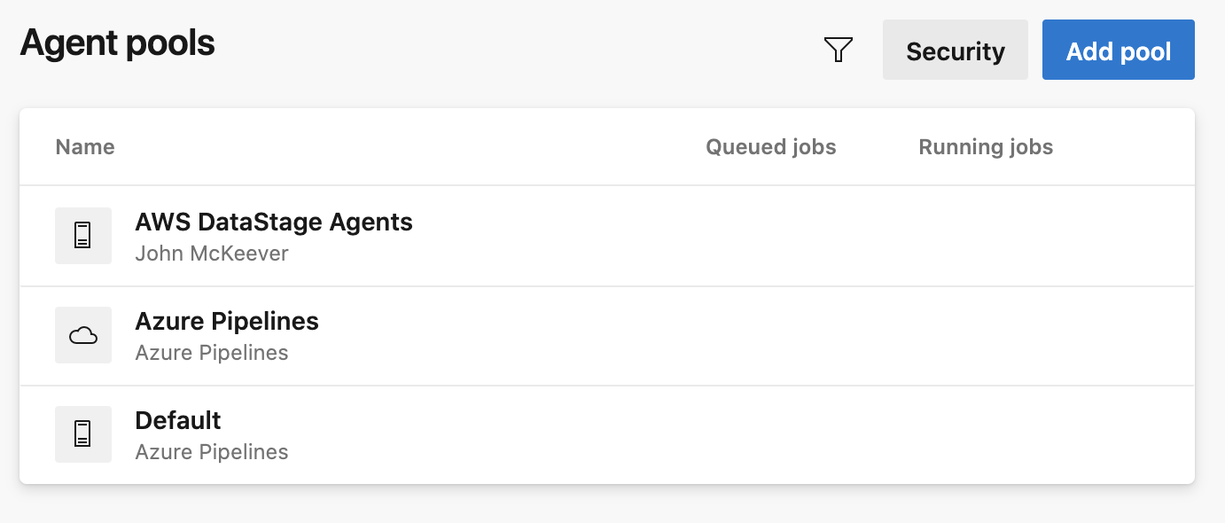 Under Project Settings create an Agent Pool for your agents. For example, here’s a list including a pool of agents across Data Migrators' AWS infrastructure: