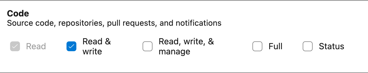 The only permissions you need to execute the example pipelines provided with MettleCI is Code - Read & Write.