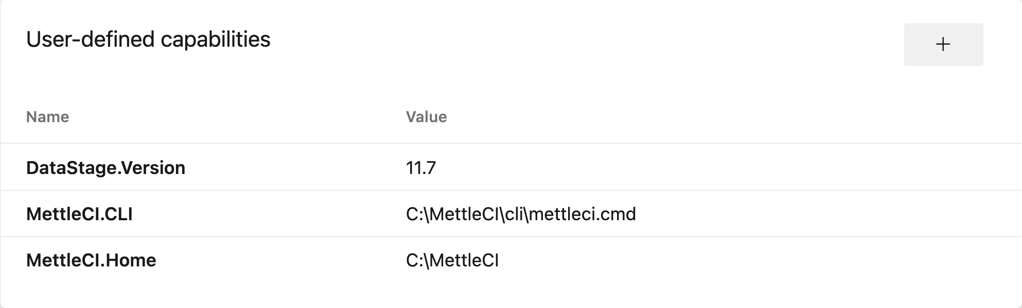Your PowerShell output should look a little like this:POWERSHELLWindows PowerShell Copyright (C) 2016 Microsoft Corporation. All rights reserved. PS C:\Users\Administrator> cd c:\ PS C:\> mkdir agent ; cd agent Directory: C:\ Mode LastWriteTime Length Name ---- ------------- ------ ---- d----- 12/08/2020 8:12 PM agent PS C:\agent> Add-Type -AssemblyName System.IO.Compression.FileSystem ; [System.IO.Compression.ZipFile]::ExtractToDirectory("$HOME\Downloads\vsts-agent-win-x64-2.173.0.zip", "$PWD") PS C:\agent> .\config.cmd ___ ______ _ _ _ / _ \ | ___ (_) | (_) / /_\ \_____ _ _ __ ___ | |_/ /_ _ __ ___| |_ _ __ ___ ___ | _ |_ / | | | '__/ _ \ | __/| | '_ \ / _ \ | | '_ \ / _ \/ __| | | | |/ /| |_| | | | __/ | | | | |_) | __/ | | | | | __/\__ \ \_| |_/___|\__,_|_| \___| \_| |_| .__/ \___|_|_|_| |_|\___||___/ | | agent v2.173.0 |_| (commit ecd4119) >> Connect: Enter server URL > https://dev.azure.com/mettleci Enter authentication type (press enter for PAT) > Enter personal access token > **************************************************** Connecting to server ... >> Register Agent: Enter agent pool (press enter for default) > AWS DataStage Agents Enter agent name (press enter for DEMO4-CLNT) > Scanning for tool capabilities. Connecting to the server. Successfully added the agent Testing agent connection. Enter work folder (press enter for _work) > 2020-08-12 10:24:26Z: Settings Saved. Enter run agent as service? (Y/N) (press enter for N) > Y Enter User account to use for the service (press enter for NT AUTHORITY\NETWORK SERVICE) > Granting file permissions to 'NT AUTHORITY\NETWORK SERVICE'. Service vstsagent.mettleci.AWS DataStage Agents.DEMO4-CLNT successfully installed Service vstsagent.mettleci.AWS DataStage Agents.DEMO4-CLNT successfully set recovery option Service vstsagent.mettleci.AWS DataStage Agents.DEMO4-CLNT successfully set to delayed auto start Service vstsagent.mettleci.AWS DataStage Agents.DEMO4-CLNT successfully configured Service vstsagent.mettleci.AWS DataStage Agents.DEMO4-CLNT started successfully PS C:\agent>You’ll need to grant your Azure agents the relevant capabilities specified in your Azure pipeline. The example pipelines provided with MettleCI require at least one agent with the following capabilities: