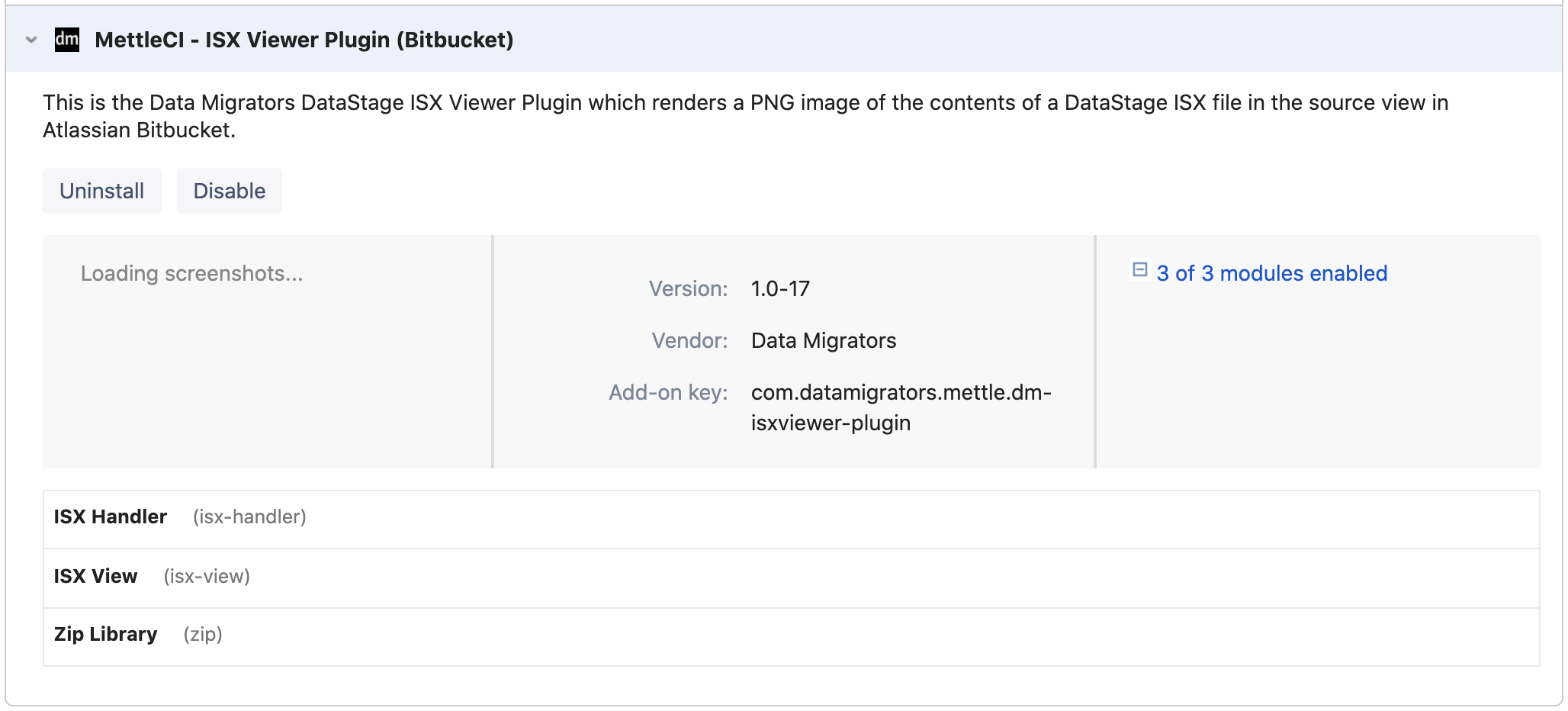 MettleCI provides a plugin for Atlassian Bitbucket Server which enables the visualisation of DataStage jobs and containers directly within the Bitbucket interface. You can install plugins from the Bitbucket admin interface using the Atlassian Universal Plugin Manager (UPM) as described below. You need to be an administrator to install plugins using UPM.