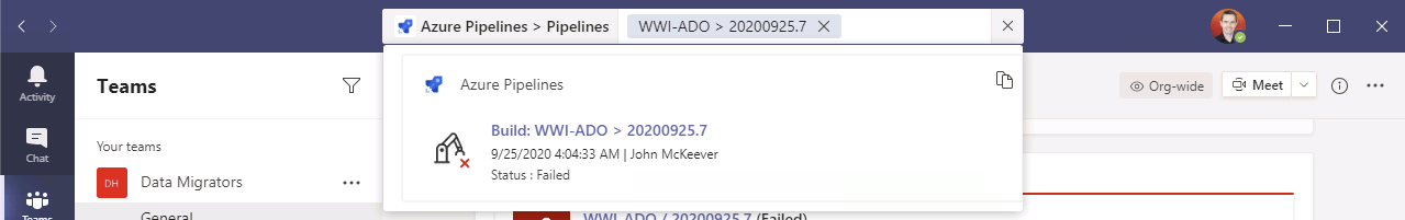 You can integrate Microsoft Azure DevOps Pipelines with Microsoft Teams in a number of ways: