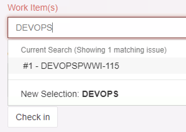 Select the issue(s) you wish to associate with your commit and they’ll be added to the Work item(s) field