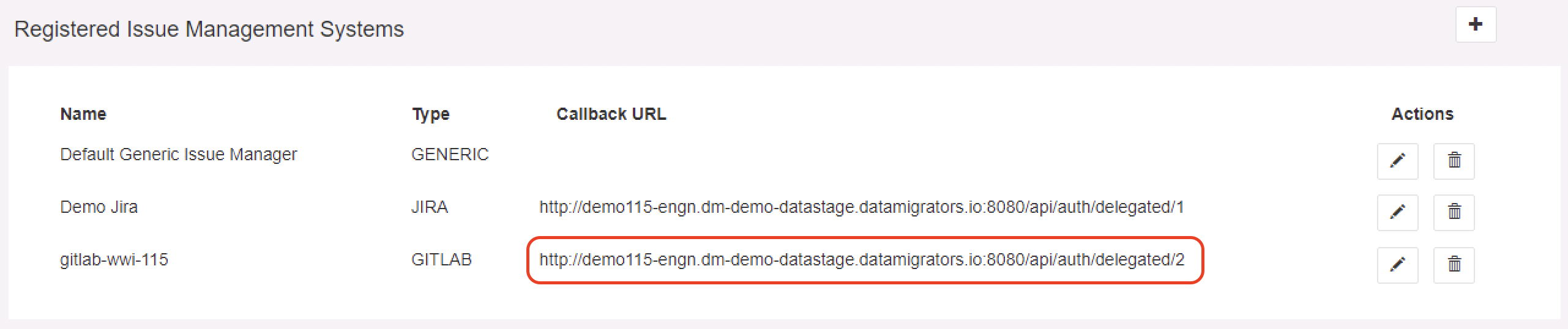 On the resulting page click the [+] icon, in the top-right, to add a new issue management system.