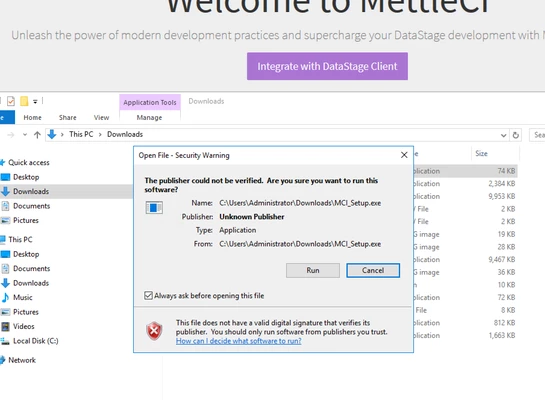 MCI_Setup.exe. Run this setup file, agreeing to any Windows Security queries which might be presented. Any warnings from Windows Defender should be dismissed by clicking the Run Anyway button.