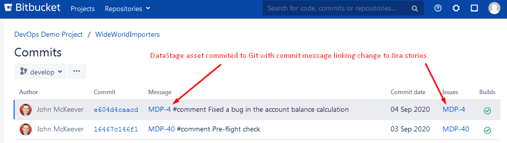 For traditional software development such as Java or C/C++, developers make changes to source code on their local machines and commit their work to Git/Bitbucket using a Git client. Once in Git, modern software development tools such as those provided by Atlassian can automatically build, test and deploy software and provide a complete audit trail from software produced all the way back to issues raised in Jira. In contrast, DataStage development involves using graphical tools to develop ETL jobs on a shared server. There is no source code and no simple way of committing work to Git/Bitbucket.