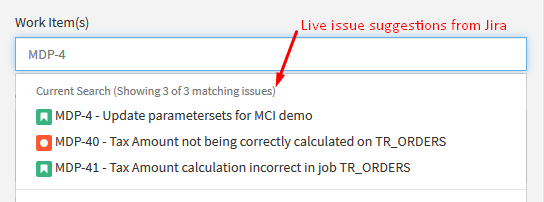 By enabling Jira integration via an AppLink with three-legged OAuth (3LO), MettleCI Workbench is able to to provide a live lookup of Jira issues based on the currently logged in user.
