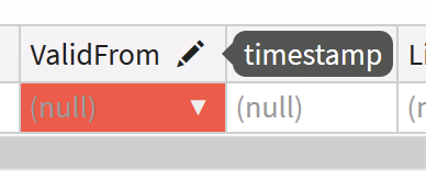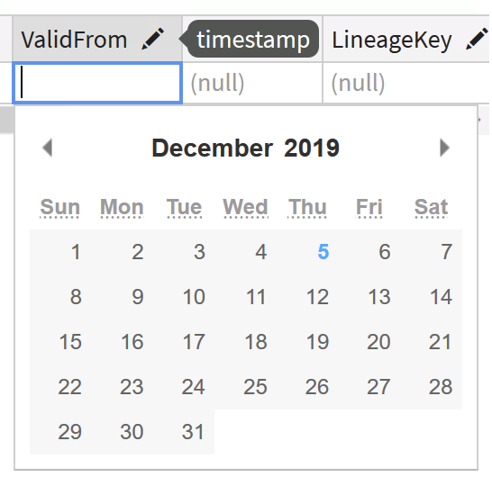 Columns with time-based datatypes can be edited by clicking the drop-down selector in each cell.