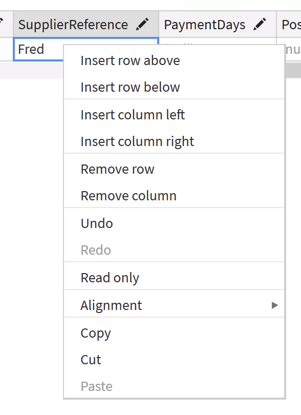 New rows (or even columns, if you want to update your metadata) can be added using the editor’s right-click menu items.