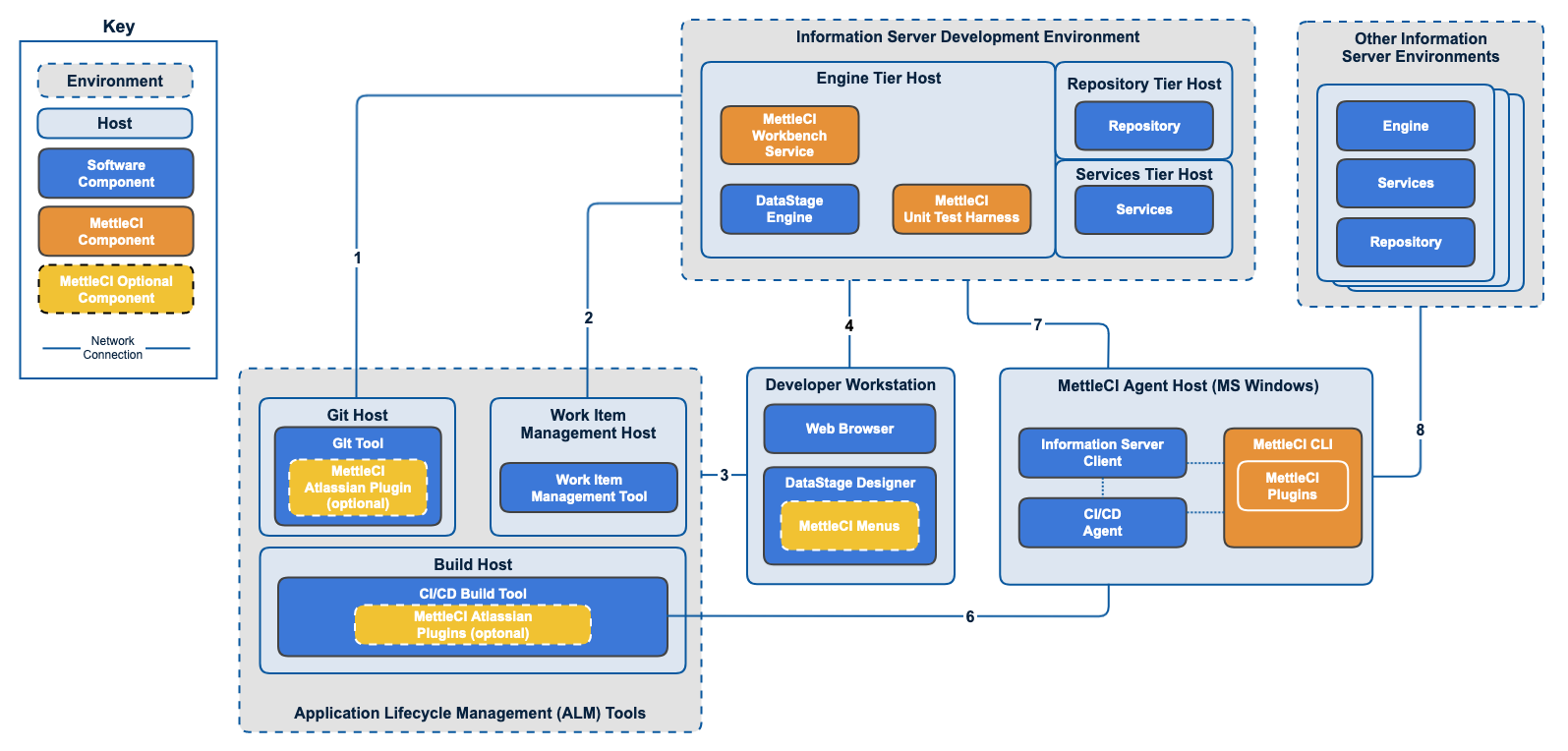1 | DataStage Development Engine Tier - MettleCI Workbench Service | Git Host - Git management system | SSH (default) or HTTPS | As defined by your organisation. | User: