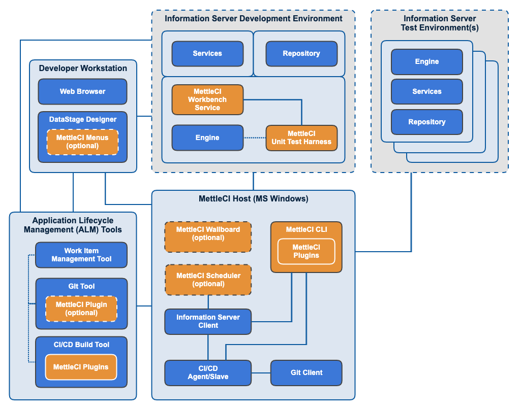 DataStage Development Engine Tier | MettleCI Workbench | MettleCI Workbench | 8080 & 8081 | 8080 & 8081 | Browser-based user interface for Unit Test specification and results, Compliance invocation, and Git check in. Note that these ports are configurable. Port 8081 is required only for the exposure of MettleCI diagnostic output. |