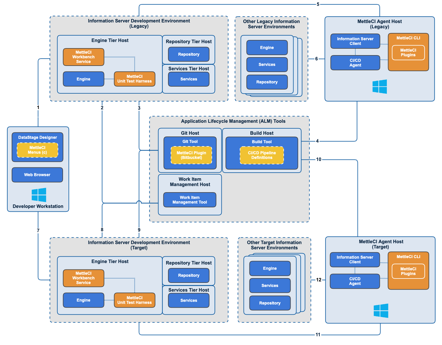 Each environment has its own dedicated MettleCI Agent running on a dedicated Windows host.