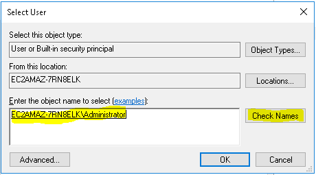 If your username is not found after clicking “Check Names”, click the “Locations…” button and select “Entire Directory”.