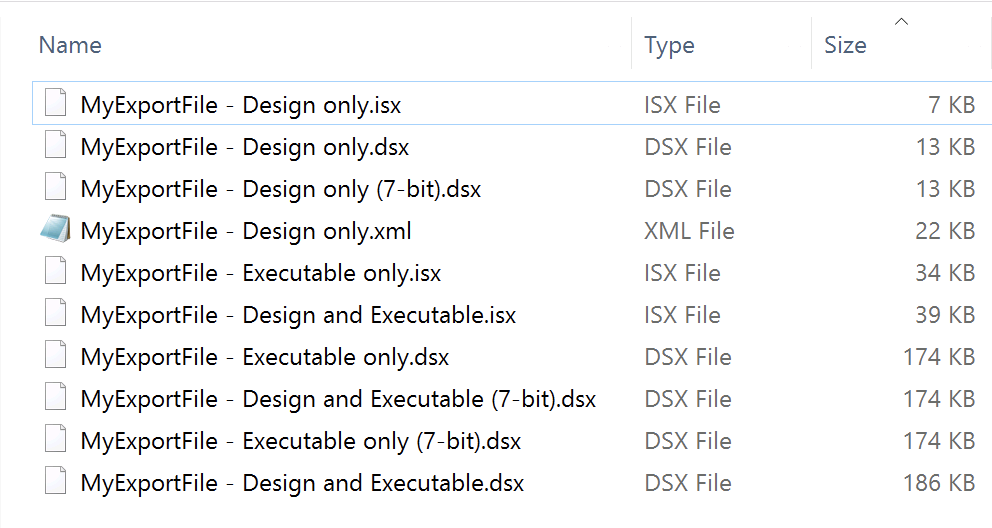 For DataStage Jobs, both the DSX and ISX formats allow you to choose whether you want your export to include Job design information only, encoded-binary executable information, or both. When you choose to create an export incorporating only Job design information then that file will need to be re-compiled in any target project into which it is subsequently imported.