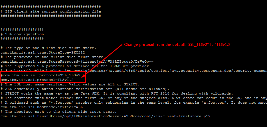 com.ibm.iis.ssl.protocol=SSL_TLSv2withcom.ibm.iis.ssl.protocol=TLSv1.2